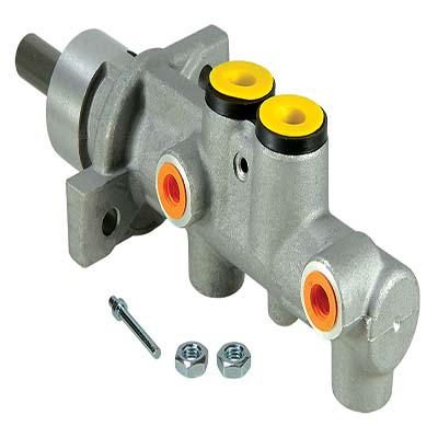 O Cilindro Mestre é responsável por fornecer pressão hidráulica para que os freios nas rodas sejam acionados. Quando é acionado, movimenta um êmbolo dentro de sua câmara. Esse movimento do êmbolo gera pressão do fluído no sistema, fazendo com que os pistões dos cavaletes e o Cilindro Mestre sejam acionados, freando o veículo.